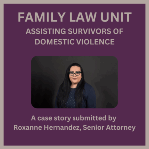 Carlotta (fictitious name), a middle-aged woman with two minor children, came to us in need of a restraining order. Her husband Joey (fictitious name) was incarcerated in prison at the time but was soon to be released, and she needed assistance with the preparation of a request for a domestic violence restraining order (DVRO). I prepared the request and provided Carlotta with representation at the DVRO hearing, which had to be continued once to complete service to Joey in prison.